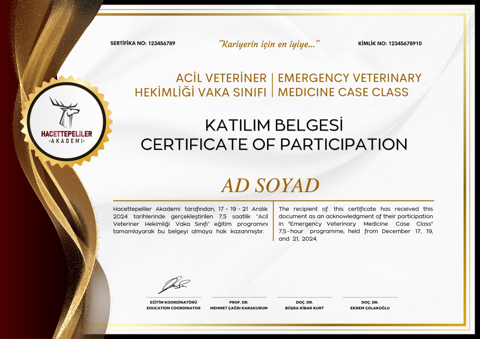 Veteriner hekimlik alanında ilerleyeceği kariyerine bir ayrıcalık katarak Hacettepeliler Akademi onaylı, kişiye özel 3 belgeye sahip olabilecektir.