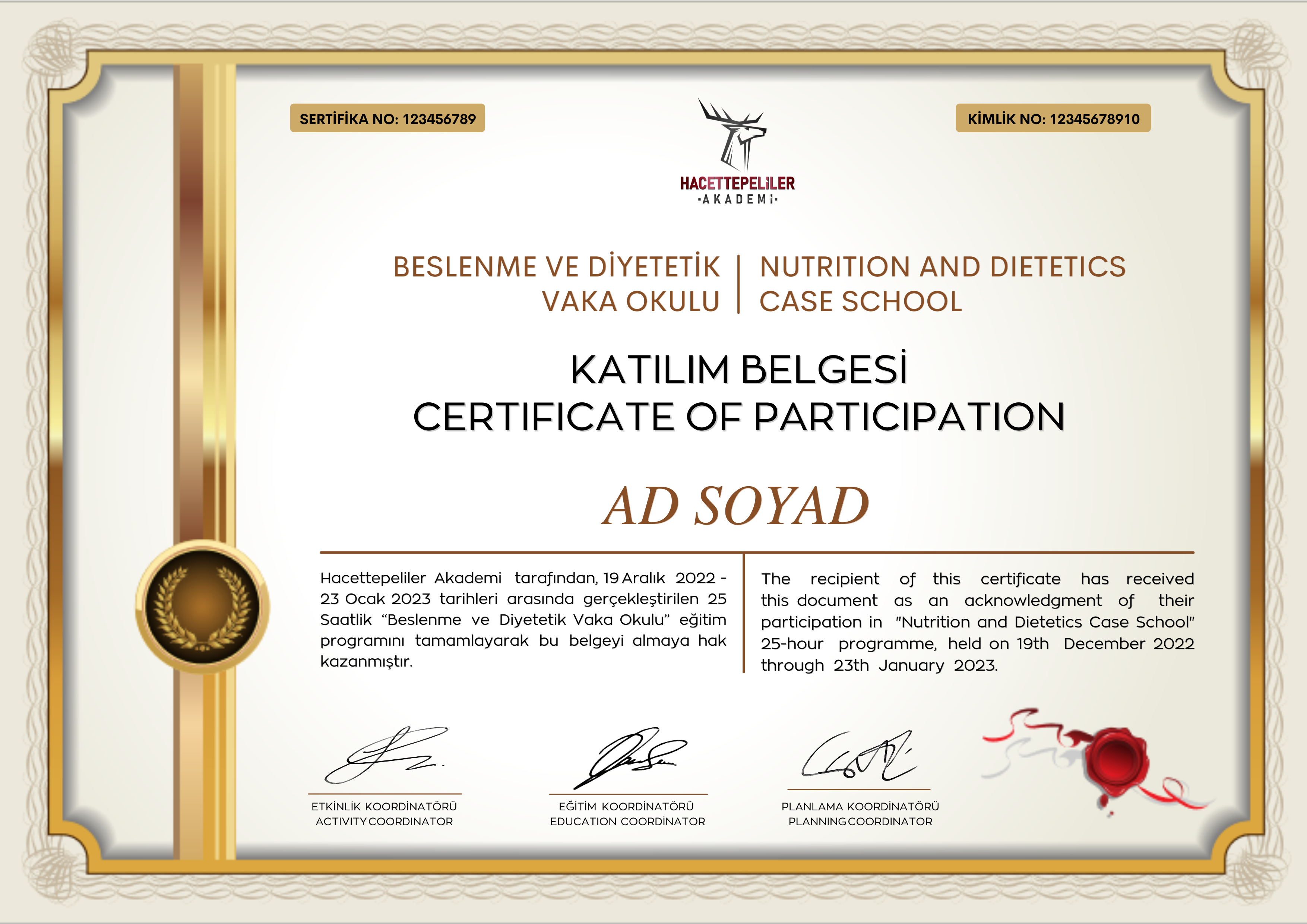 Beslenme ve Diyetetik bölümü öğrencilerinin ve mezunlarının süpervizyon ihtiyaçlarına yönelik hazırlanan Beslenme ve Diyetetik Vaka Okulu eğitimini alan bir kişi;