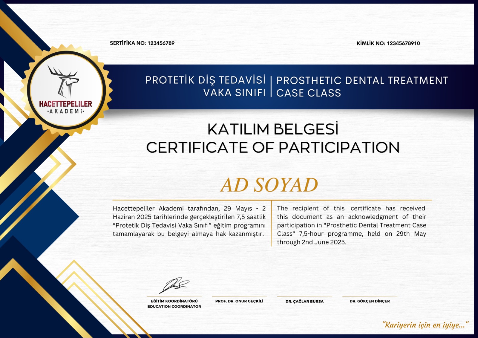 Diş Hekimliği öğrencilerinin ve mezunlarının süpervizyon ihtiyaçlarına yönelik hazırlanan Protetik Diş Tedavisi Vaka Sınıfı eğitimini alan bir kişi;